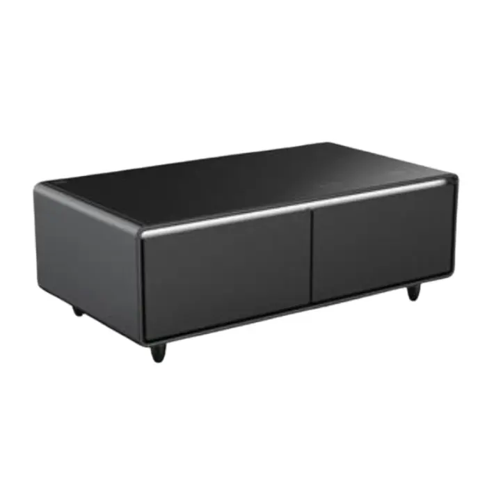 اكسبير طاولة ذكية مزودة بإضاءة LED داخلية تضيف لمسة جمالية وتسهّل رؤية محتويات الثلاجة المدمجة مما يجعل الوصول إلى المشروبات والأطعمة سريعًا ومريحًا ليعزز التصميم العصري للطاولة في أي مساحة.