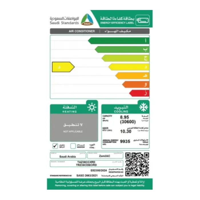 الزامل مكيف اسبلت 30600 وحدة – وطني – بارد TRZ36CDBCIRD