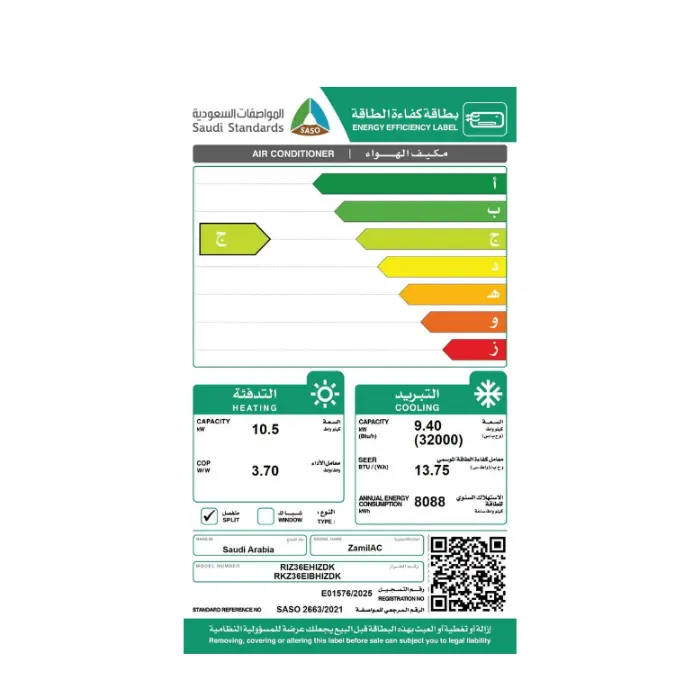 | الصنف | الزامل مكيف كاسيت 32000 وحدة – انفرتر – حار و بارد |