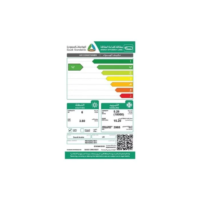 | الصنف | ال جي مكيف اسبليت سمارت 18000 وحدة انفرتر -حار/بارد |