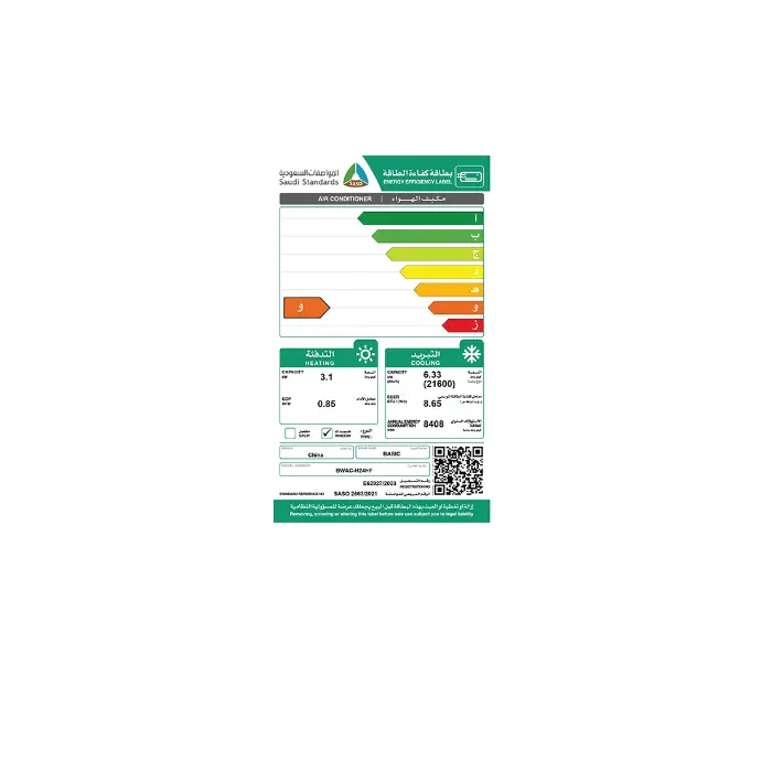 يتمتع بقدرة تبريد وتدفئة تصل إلى 21400 وحدة حرارية، ما يجعله مثاليًا لتغطية مساحات كبيرة بسهولة. سواء كنت تستخدمه في غرفة معيشة واسعة أو مكتب عمل، فإنه يضمن توزيعًا فعالًا للهواء، مما يحقق راحة كاملة خلال فصول الصيف الحارة والشتاء الباردة. قوته هذه تجعله مناسبًا لمختلف البيئات، مما يضمن أداءً يعتمد عليه طوال العام.