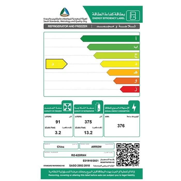 | الصنف | ارو ثلاجة بابين 16 قدم نوفروست بخار – ستيل |