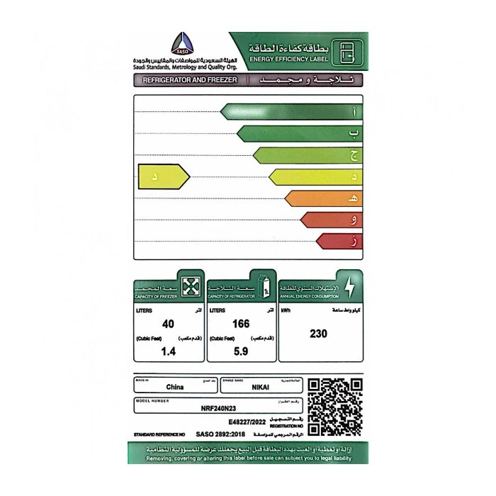 الوسوم: ثلاجة 7.2 قدم, ثلاجة بابين, ثلاجة نيكاي