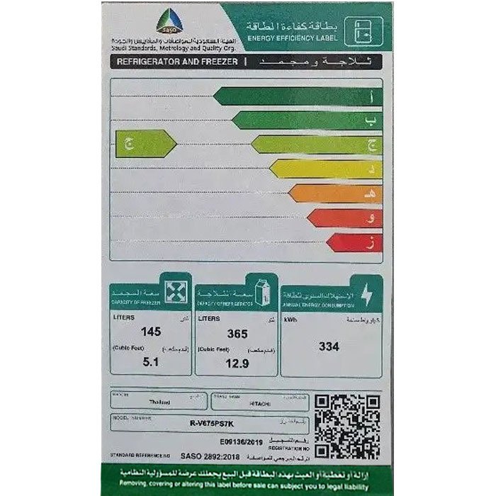 | الصنف | هيتاشي ثلاجة بابين 18قدم انفرتر – نو فروست -فضي |