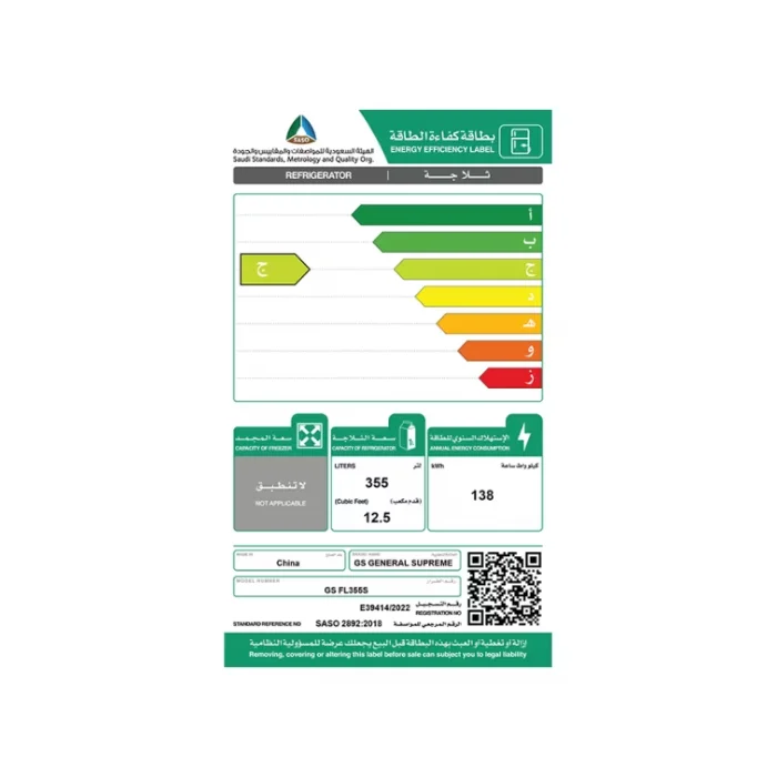 جنرال سوبريم ثلاجة باب واحد 12 قدم – ستيل Gs FL355S