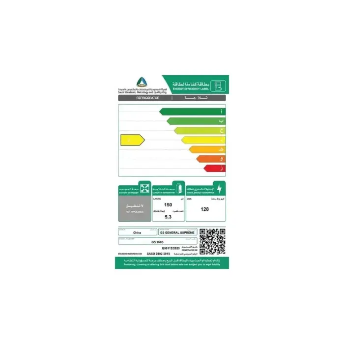 جنرال سوبريم ثلاجة باب واحد 5 قدم – فضي GS150S