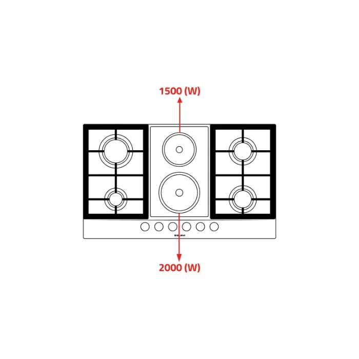 - إجمالي قوة شعلات الغاز: 7500 وات