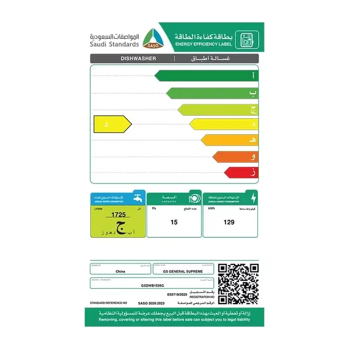 | الصنف | جنرال سوبريم غسالة صحون بلت ان 6 برامج 15 مكان فضى |