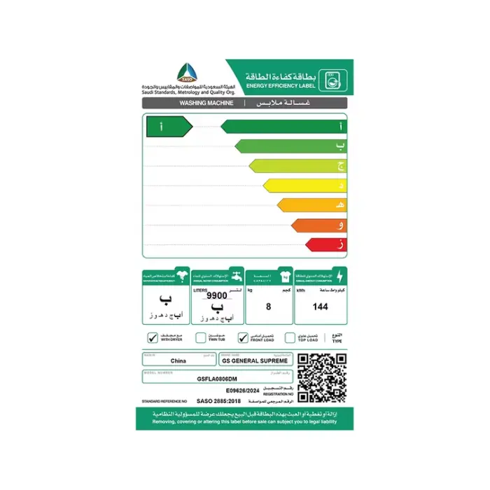 | الصنف | جنرال سوبريم غسالة ملابس اتوماتيك – تحميل أمامي 8 كجم انفرتر – فضي |