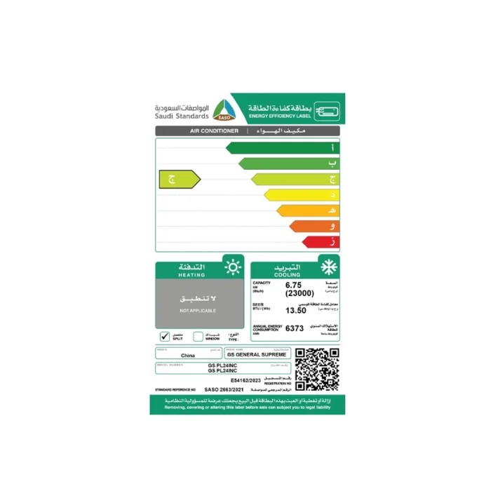 | الصنف | جنرال سوبريم مكيف سبليت 23000 وحدة – بارد |
