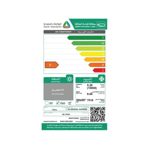 - يتميز المكيف بكفاءة عالية خلال عملية التشغيل