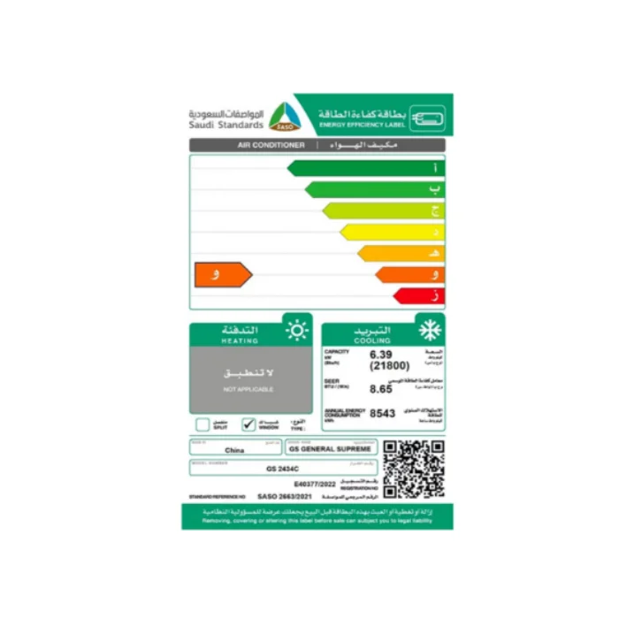 جنرال سوبريم مكيف شباك 21800 وحدة – بارد |