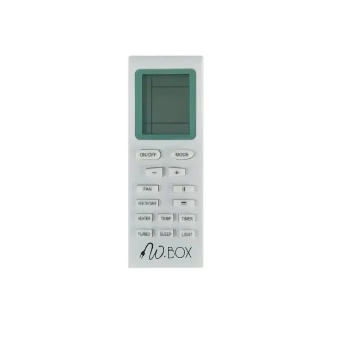 يوفر دبليو بوكس مكيف سبليت وحدة تحكم عن بُعد عملية وسهلة الاستخدام تتيح لك ضبط درجة الحرارة وسرعة المروحة واتجاه الهواء بكل يسر من أي مكان بالغرفة دون الحاجة للتوجه إلى الوحدة الداخلية كما تتيح هذه الوحدة الوصول السريع إلى جميع إعدادات المكيف بما في ذلك تشغيل وإيقاف التشغيل ووضع التبريد الاقتصادي ووضع النوم الهادئ لتجربة استخدام مريحة ومرنة تلبي احتياجاتك اليومية وتضمن التحكم الكامل في مناخ الغرفة بسهولة ودون جهد إضافي.