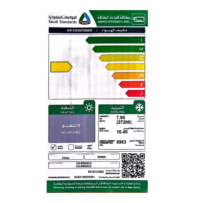 | الصنف | روى مكيف سبليت 27200 وحدة – بارد |