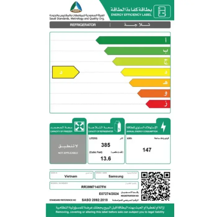 | الصنف | سامسونج ثلاجة باب واحد 14 قدم انفرتر – نو فروست – ستيل |