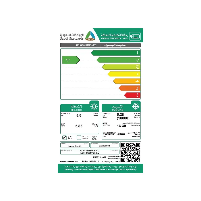 | فئة كفاءة الطاقة | B |