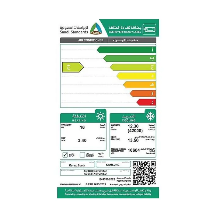 | حجم المكيف | 48000 وحدة |