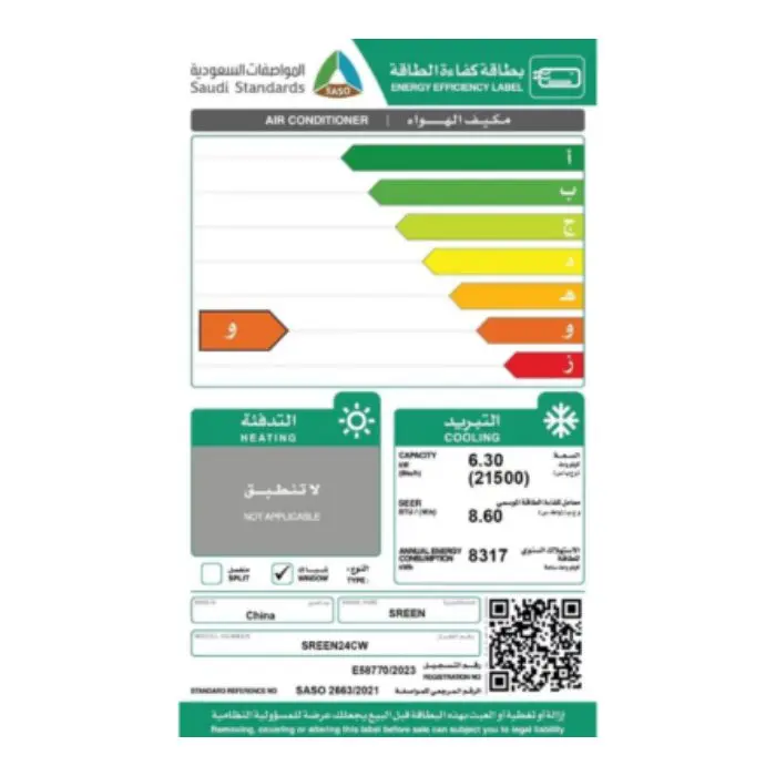 | الصنف | سرين مكيف شباك – 21500 وحدة – بارد |