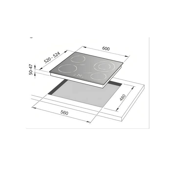 - موقد زجاج سيراميك كهرباء بمقاس : 60 سم