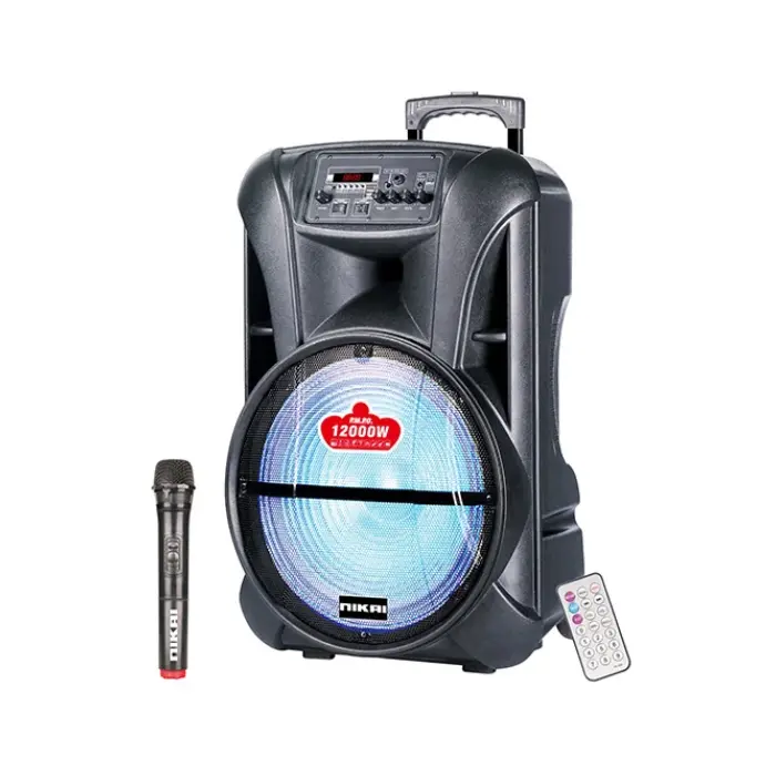 نيكاي سماعة بلوتوث تتضمن جهاز تحكم عن بُعد يتيح لك إدارة جميع الوظائف بسهولة دون الحاجة للوصول المباشر إلى السماعة. يمكنك من خلاله ضبط مستوى الصوت، التنقل بين المقاطع، التحكم في أوضاع التشغيل مثل البلوتوث أو الراديو، مما يوفر تجربة استخدام مريحة وعملية في جميع الأوقات.