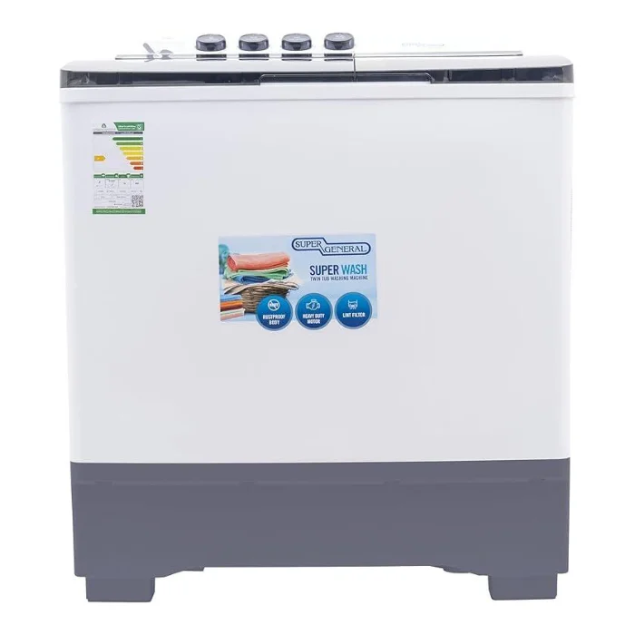 سوبر جنرال غسالة حوضين 15 كيلو – أبيض KSGW1555