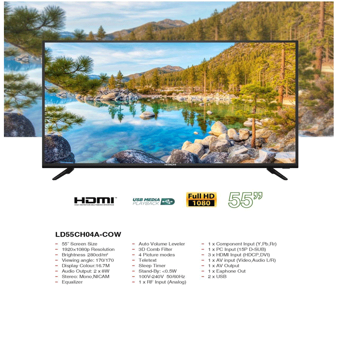 هيتاشي شاشة 55 بوصة FHD ال اي دي Ld55ch04a-cow