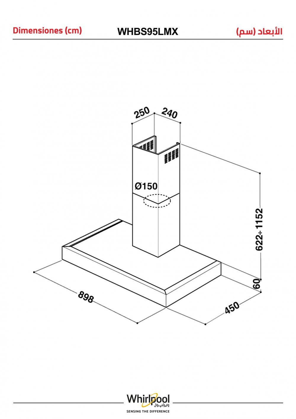 مواصفات ويرلبول شفاط بلت ان 90 سم 3 سرعات – ستيل Whbs95lmx :