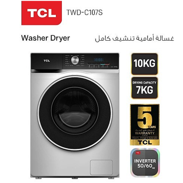 تي سي ال غسالة تعبئة امامية 10 كيلو 7 ك تجفف - فضي Twd-c107s
