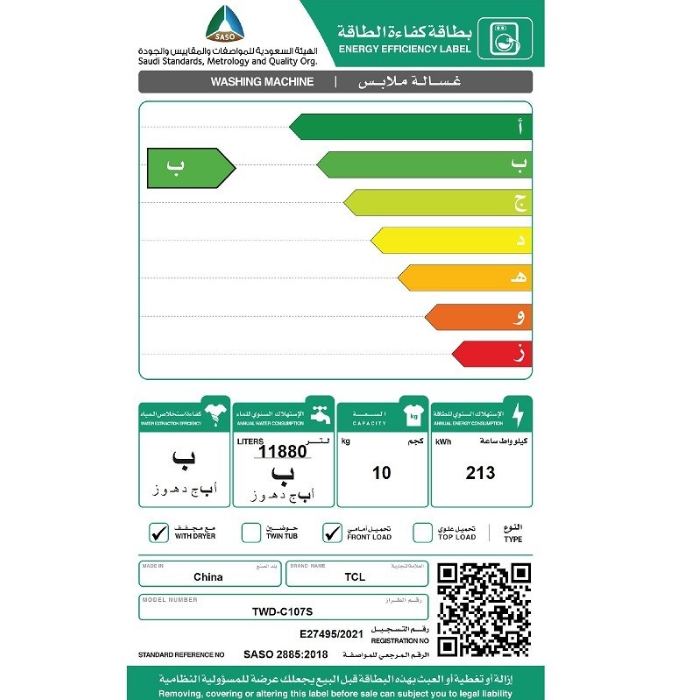 | الصنف | تي سي ال غسالة تعبئة امامية 10 كيلو 7 ك تجفف – فضي |