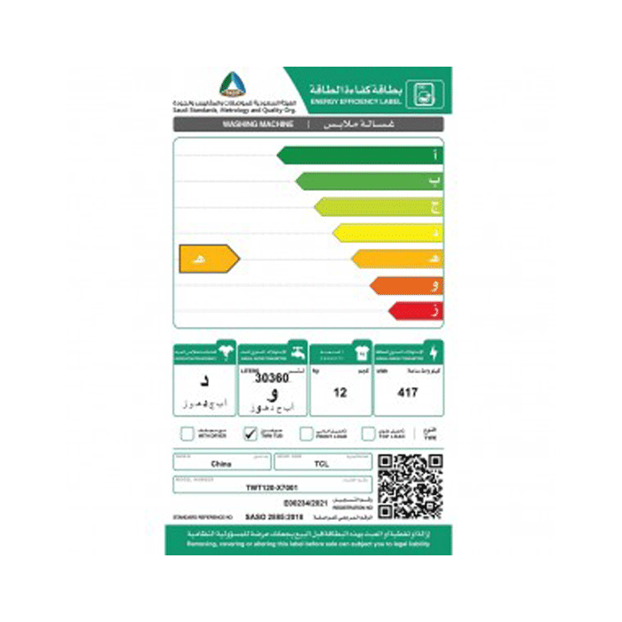 | الصنف | تي سي ال غسالة حوضين 12 كيلو – أبيض |