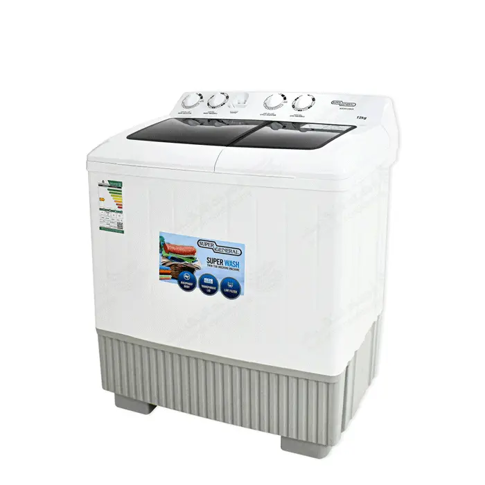 سوبر جنرال غسالة حوضين 12 كيلو – ابيض Ksgw1286n