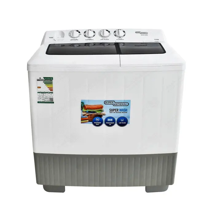 سوبر جنرال غسالة حوضين 14 كيلو – أبيض KSGW 1486N