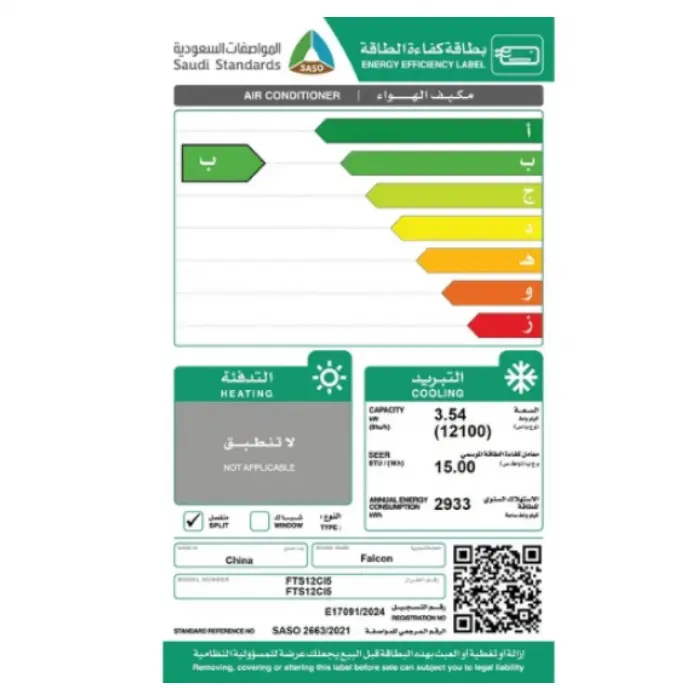 | الصنف | فالكون مكيف سبليت 12100 وحدة – انفرتر – بارد |