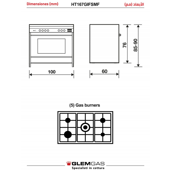 مواصفات جليم غاز فرن 100* 60 سم ديجتال – إيطالي – ستيل Ht167gifsmf :