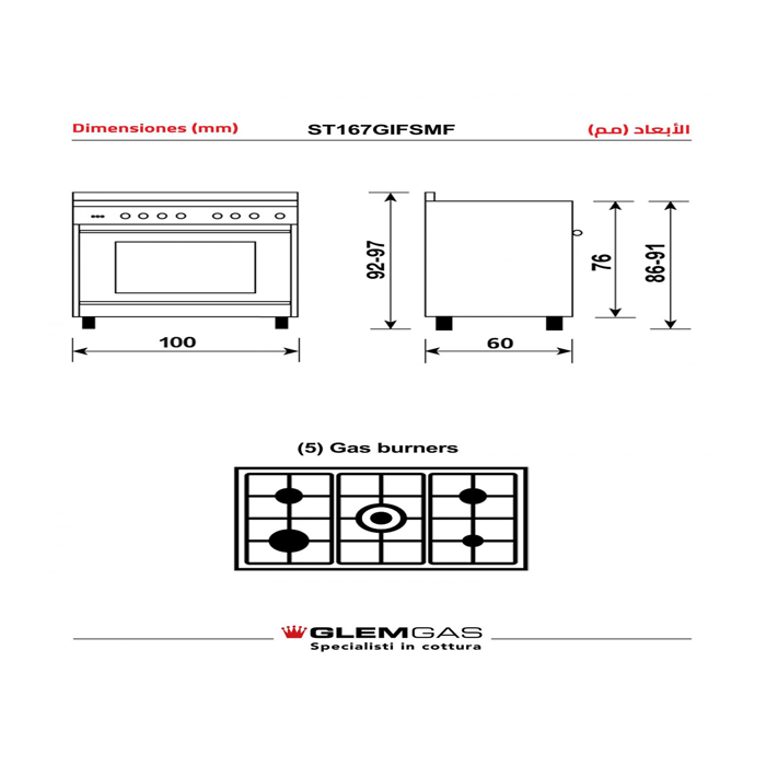 مواصفات جليم فرن غاز 100* 60 سم – 5 شعلة – إيطالي – ستيل St167gifsmf :