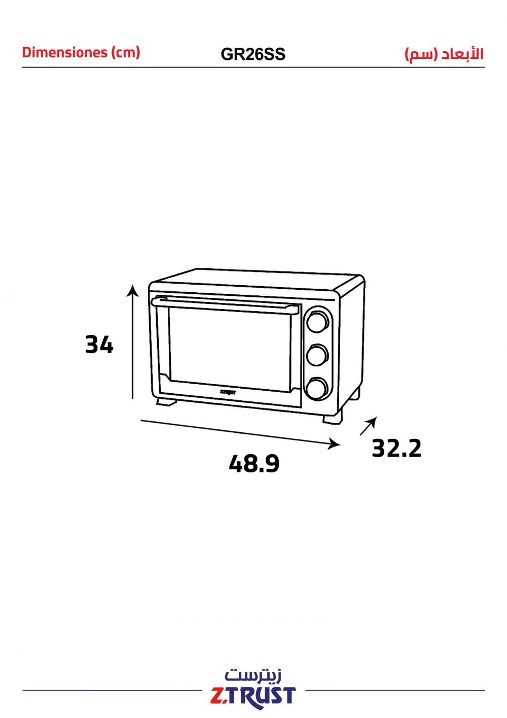 مواصفات زيترست فرن كهرباء 26 لتر – 1500 وات – ستيل Gr26ss :