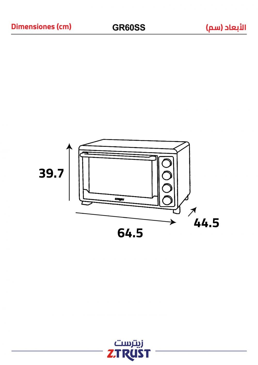 - أبعاد الفرن: 64.5 سم * 44.5 سم * 39.7 سم
