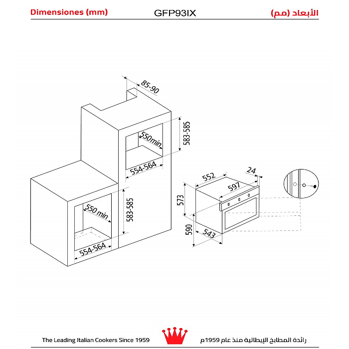 مواصفات جليم فرن كهربائي بلت ان 60 سم 9 وظائف-إيطالي Gfp93ix :