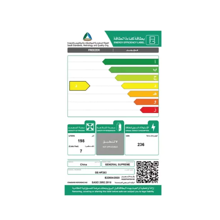 - معدل استهلاك الطاقة السنوي : 236 كيلو وات / ساعة
