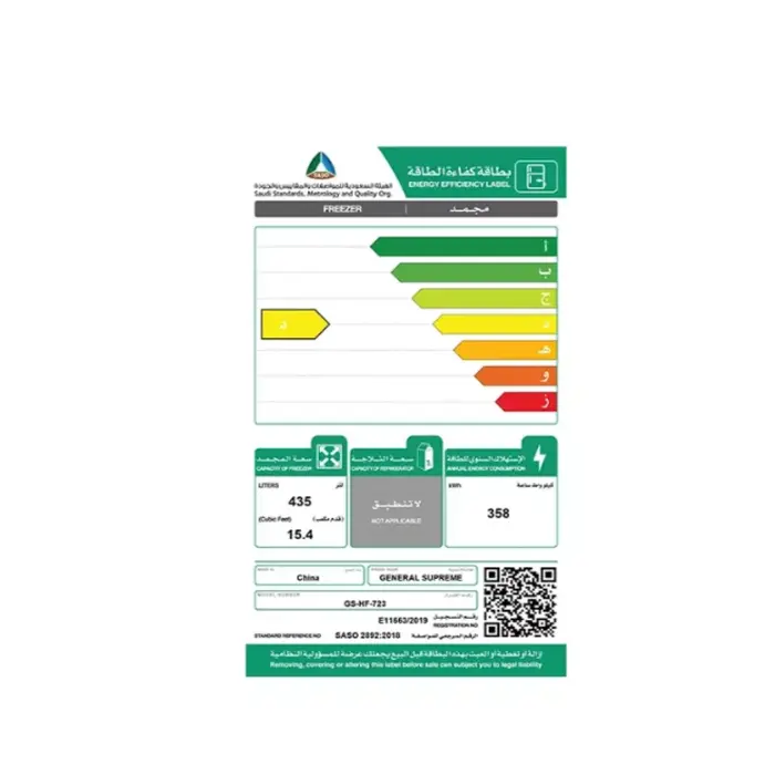 | الصنف | جنرال سوبريم فريزر افقي 15 قدم – أبيض |
