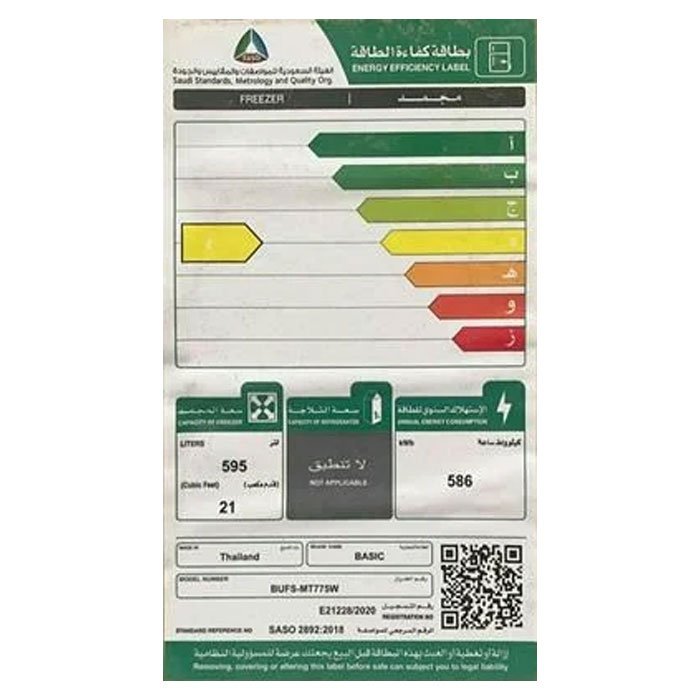 مواصفات فريزر عمودي بيسك 21 قدم – أبيض :