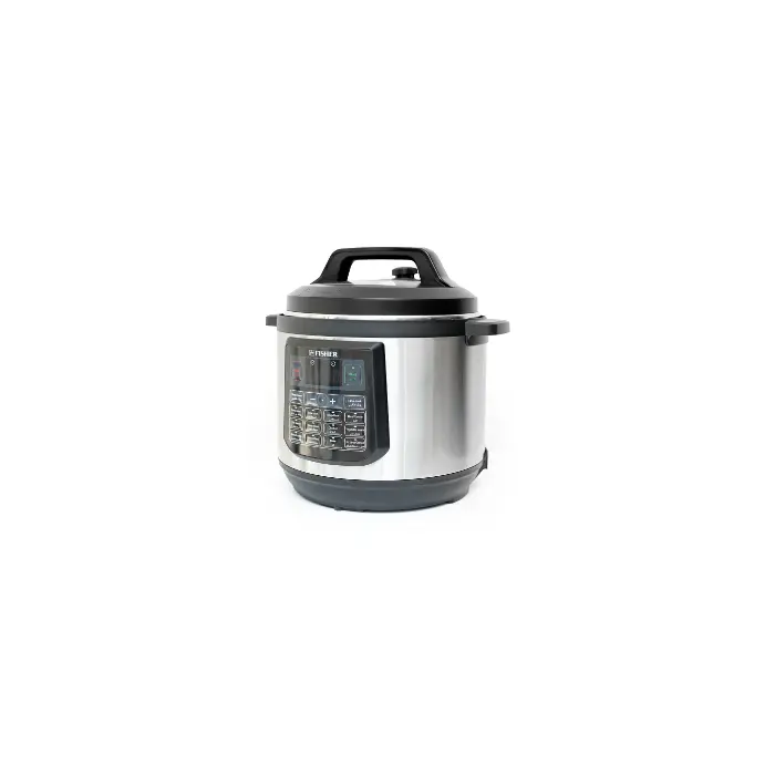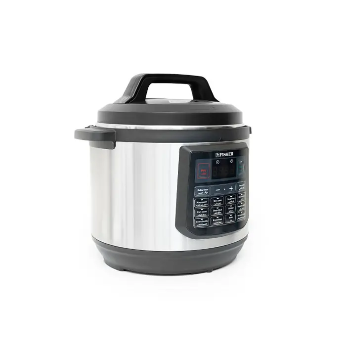 تأتي فيشر طنجرة ضغط كهربائية بتصميم عصري وأنيق يجمع بين الشكل الجذاب والوظائف العملية. الهيكل الخارجي الفضي اللامع يعطي لمسة جمالية للمطبخ، بينما يضمن التصميم المتين والمتوازن ثبات الجهاز أثناء الطهي. الواجهة مزودة بأزرار واضحة وسهلة الاستخدام، مما يسهل اختيار البرامج وضبط الوقت والحرارة دون تعقيد. بالإضافة لذلك، يسهّل الغطاء والوعاء الداخلي القابل للإزالة عمليات التنظيف والصيانة، مما يجعل الطنجرة مثالية للاستخدام اليومي دون أي عناء.
