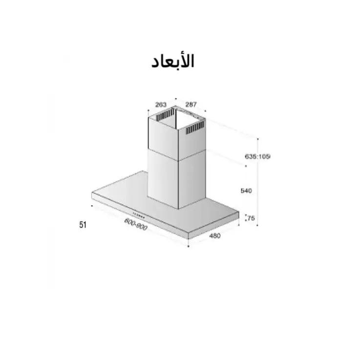 - شفاط مطبخ عملي بمقاس 90 سم يغطي مساحة الطهي بالكامل