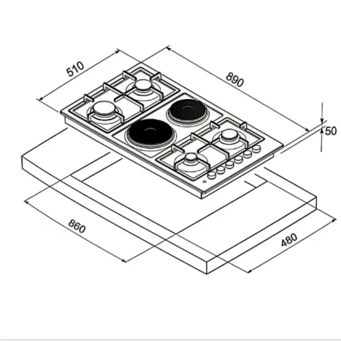 - عدد العيون : 4 عيون غاز + 2 شعلة كهرباء سيراميك