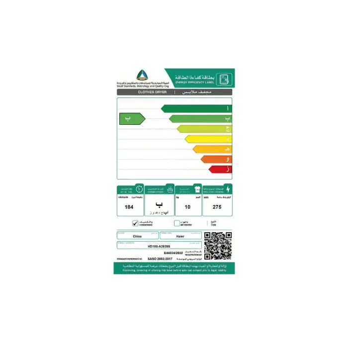 تعمل هاير مجفف ملابس بتكنولوجيا المضخات الحرارية التي تمنحك كفاءة عالية في استهلاك الطاقة وتوفير المياه مع الحفاظ على الملابس بشكل لطيف. هذه التقنية المتقدمة تضمن توزيع الحرارة بشكل متساوٍ أثناء الغسيل، مما يحسن من أداء التنظيف ويقلل من التلف الناتج عن الحرارة العالية أو غير المتوازنة، لتظل الملابس ناعمة وطويلة العمر. كما أنها تعمل بشكل اقتصادي، مما يقلل فواتير الكهرباء والمياه بشكل ملحوظ مقارنة بالغسالات التقليدية.