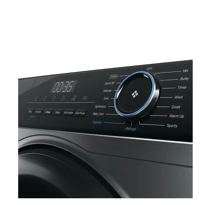 هاير مجفف ملابس مزودة بلوحة عرض رقمية ذكية، تتيح لك متابعة الوقت المتبقي لكل دورة غسيل بدقة. هذه اللوحة توفر واجهة سهلة الاستخدام يمكن من خلالها اختيار البرامج المختلفة، ضبط درجة الحرارة، سرعة العصر، وحتى بدء الغسيل المؤجل، لتتمكن من التحكم الكامل في عملية الغسيل بسهولة ويسر. كما تساعدك هذه الشاشة على مراقبة الأداء ومعرفة أي تنبيهات أو رسائل صيانة بشكل مباشر، مما يضيف مستوى عالٍ من الراحة والذكاء في استخدام الغسالة.