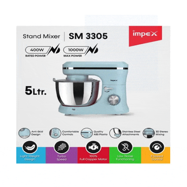 - يأتي بملحقات : خطاف عجين/مضرب مسطح /خفاقة مكونة من 6 أسلاك