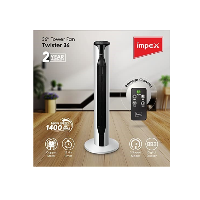 كن أول من يقيم “امبكس مروحة كهربائية برج 3 سرعات 55 وات -أسود/فضي Twister 36” إلغاء الرد