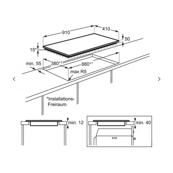 AEG مسطح بلت ان كهرباء 3شعلات-90 سم-أسود HK953400FB IND