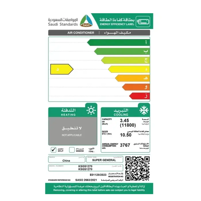 | الصنف | سوبر جنرال مكيف اسبليت 11800 وحدة – بارد |
